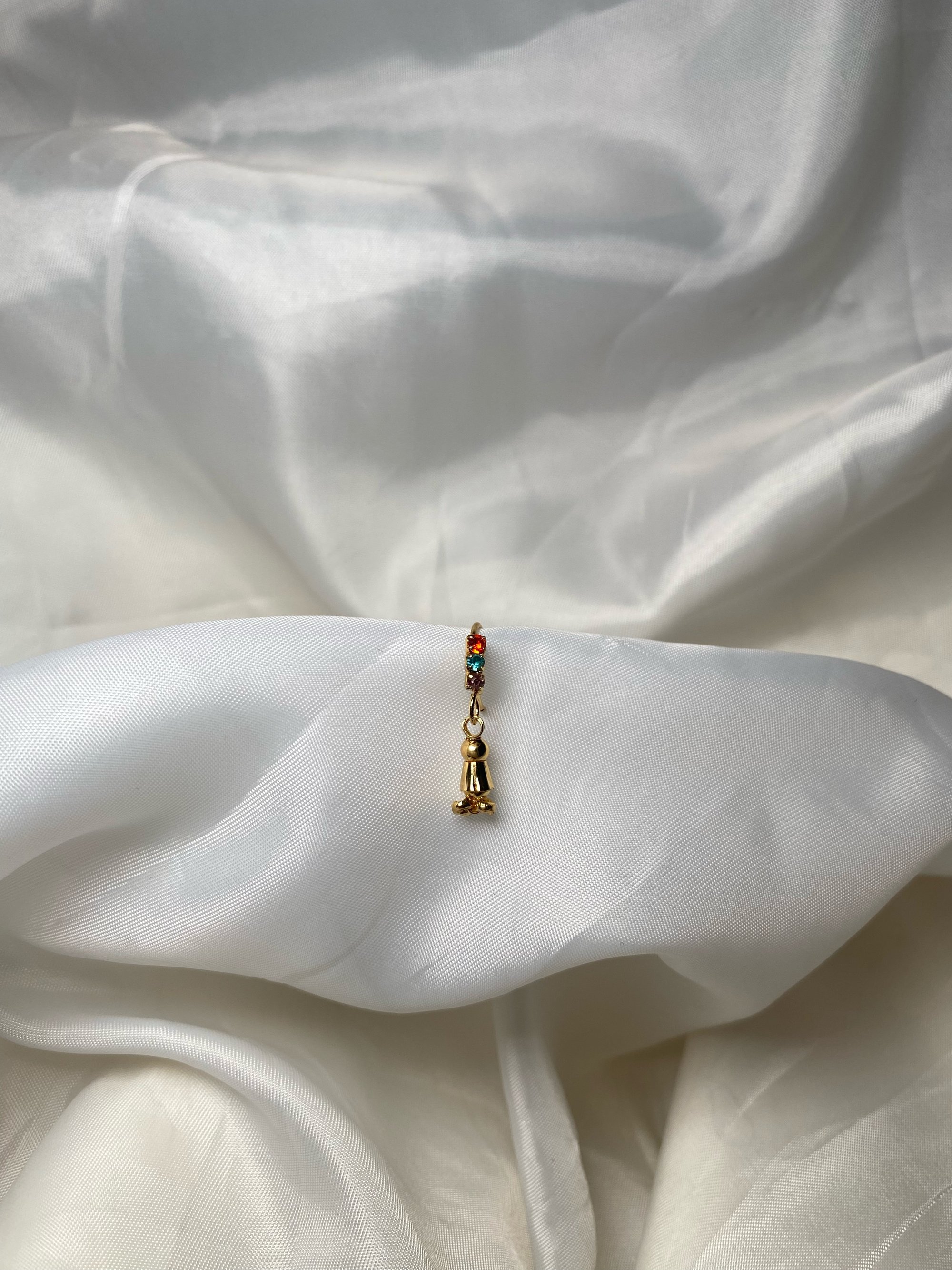 Step into elegance with our Dangling Hoop Nose Ring, a stunning accessory crafted in gold with diamonds and vibrant colors. Featuring adjustable ends for a perfect fit, this high-quality piece is both durable and delicate at 20 gauge, made of brass. Elevate your style effortlessly with this exquisite nose ring, radiating sophistication and charm with every wear.