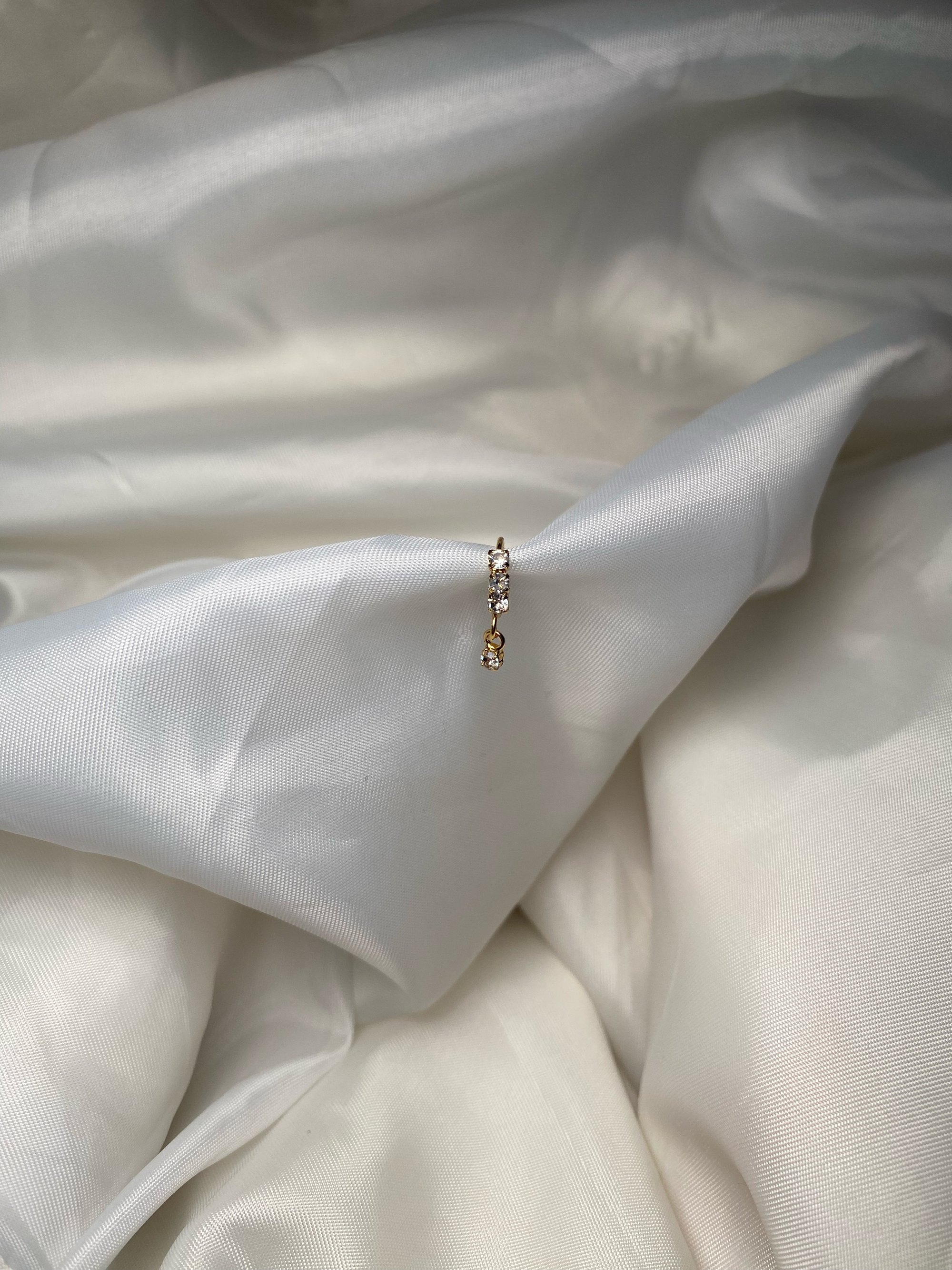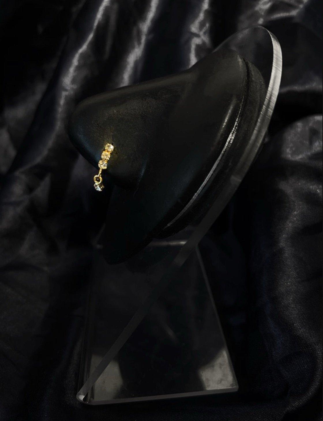 Introducing our Dangling Hoop Nose Ring adorned with luxurious gold and diamonds. Featuring adjustable ends for a perfect fit, this high-quality piece is crafted at 20 gauge from durable brass. Elevate your elegance effortlessly with this stunning accessory, guaranteed to make you feel absolutely gorgeous.